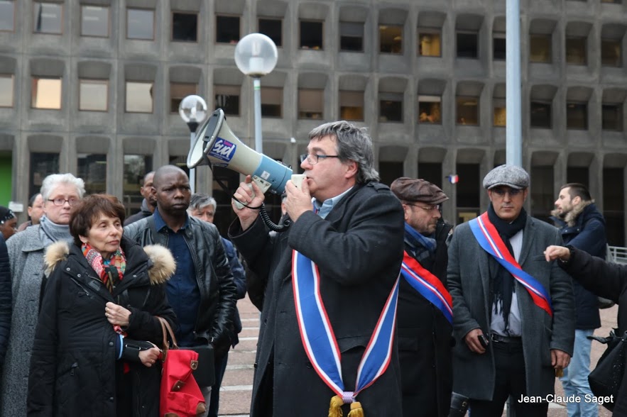 Photos prises lors du rassemblement et la conférence de presse organisée par le collectif du livre noir et les élus du département du 93, le 5 mars 2018 Bobigny.